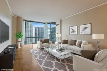 ENJOY GORGEOUS SOUTH-FACING VIEW WITH PLENTY OF SUNLIGHT, AMAZING LAKE, CITY, AND PARK VIEWS FROM THIS LUXURIOUS UNIT!! The owner takes care of the unit very well: high floor 1BR/1BA with great closet space, balcony, HDWD throughout, granite, stainless, 2 walk in closets, lg living room, in unit w/d. The riverfront Chandler bldg has 24hr door staff, theater, gym, pool, sun deck. Lakeshore East neighborhood includes 6 acre park, dog park, restaurants, Marianos, direct access to lake. Full Amenities include, rooftop indoor swimming pool w/ 2 outdoor decks, outdoor Hottub, Fitness Center, Media Room, Party Room