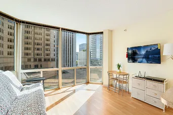 SELLER RELOCATED FOR WORK, AMAZING BUY OPPORTUNITY! Beautiful studio at the Park Millenium! South-facing unit features floor-to-ceiling windows that let in ample sunlight, custom window treatments, hardwood floors, and in-unit washer/dryer. Building has rental valet parking available. Full amenity building offers 24-hr door staff, fitness center, 75' indoor pool, whirlpool, sauna, party room with full kitchen, patio with barbecue grills, dry cleaners, and business center with conference room. Linked also to underground Pedway for incredibly convenient indoor access to the loop. Unbeatable location by Michigan Avenue, Millennium Park, Lakeshore East Park, the Lake, Mariano's, and great restaurants/nightlife! Priced to sell!
