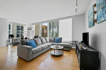 Best value play in Lakeshore East's Premier full amenity high-rise building front and center opening up to the Lakeshore East Park, Village Market with Mariano's Ming Hihn, dentist, chiropractor, vet, hair/nail salon and home to 7 restaurants. Residence 1206 features floor to ceiling windows, separate living and dining spaces that accommodate a fourth seating area great for a home office. Residence 1206 is a 1,244 square foot northwest corner home with extra large near 12 foot island, comfortable seating for 6, gas cooktop, vented culinary hood, built into cabinet oven, GE Monogram stainless steel appliance series, Flat panel Snaidero cabinetry, 1.25" quartz counters, single color, glass mosaic backsplash, under mount sink, disposal. Gallery hallway and formal entry for art, painting/photography display. Bamboo hardwood floors. Powder room. In unit washer and dryer. Primary suite with walk in and linen closets. dual Snaidero vanity, soaking tub and shower combination. Bathroom dressed in floor to ceiling natural stone. Enjoy views of the Lakeshore East Park, Pritzker Pavilion in Millennium Park and architectural wall of some of Chicago's most storied buildings on South Michigan Ave. Nearly 1250 square feet and the size of most two bedrooms in most neighborhood high-rise buildings. 340 on the Park is a full amenity building featuring 24 hour doorstaff, onsite management and maintenance staff, dry cleaners, outdoor pet relief area, short cut to Mariano's and the restaurants and services of the Village Market, 25th floor 75' two lane indoor lap pool, whirlpool, dry sauna, steam rooms, sun terrace, gas grills, patio furniture, Wintergarden, Private dining and conference room, complete caterer's kitchen, 4,000 square foot gym facility where outside trainers are welcome. Heated garage parking spaces are available from $35,000 to $38,000 P4 and P5. Ask Listing Broker for details. Residence 1206 will not last price at $401 per square foot in the best location in Lakeshore East at the base of Chicago's largest front yard and on Lake Michigan.